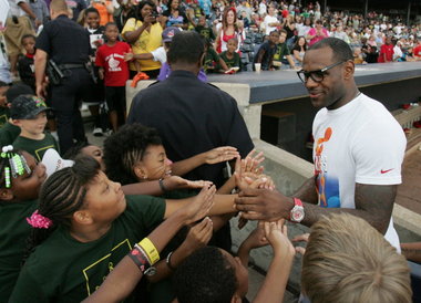 Lebron James was honored in his home town of Akron, Ohio at a minor league game for his work in the inner city for young youth with his “Wheels For Education” Foundation. It was a overflow crowd at the game to honor “King James”.