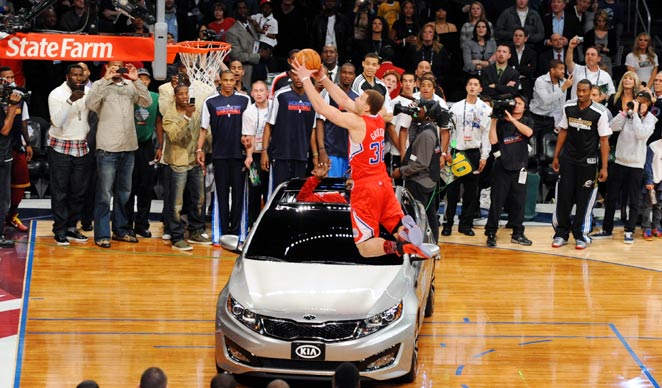 Los Angeles Clippers young star Blake Griffin won this year dunk contest at the NBA All Star weekend at the Staples Center in Los Angles. One of his dunks was him jumping over a doggone car!! Congrates to the young fella.